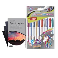 Flair 1 mm Glitter Sparkle Gel Pen 10 Pcs With 6×6 Colorissimi Paper Combo Pack