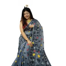 Rnn Saree Bonolata Soft Cotton Silk Dhakai Jamdani Saree without Blouse (Grey & Black)