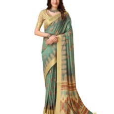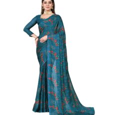 Rajeshwar Fashion Women’s Georgette Saree Printed Saree With Blouse Piece (NEW,A15 Blue Green)