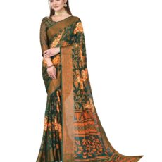 ROOP SUNDARI SAREES Women’s Floral Printed Georgette Stylish Saree For Women With Lace Work Blouse(A52 GREEN_Multicolored_Free Size 6.30 Mtr)