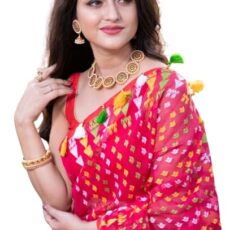 ROOP SUNDARI SAREES Women’s Georgette Bandhani Printed Saree With Lace Border & Blouse Piece(_Multicolored_Free Size 6.30 Mtr)