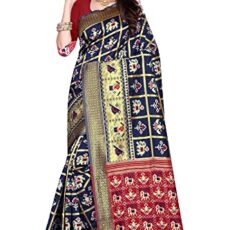 SATIKA RITI Woman’s Solid Patola Beautiful Ethinic Wear Saree With Unstiched Blouse Piece (G-K-1112-NavyBlue-Free Size)