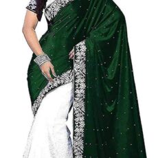 Market Magic World Women’s Satin Saree With Blouse Piece (Jst-Silk_Peacock_Free Size_Dark Green)