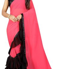 Market Magic World Women’s Georgette Saree (Combinationruffle_Gajri-Black_Free Size_Gajri Black)