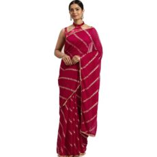 Looks 18 Women’s Geometric Print Pure Georgette Saree With Blouse Piece (Georgette-Pink-sari-0222-Free-Size_Pink)