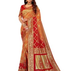 MANOHARI Women’s Most Trendy Banarasi Woven Yellow with Multicolor Saree With Heavy Jacquard Work Saree With Blouse Piece