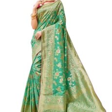 Monjolika Fashion Women’s Woven Silk Saree With Blouse Piece (37769_Color_Light Green)