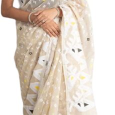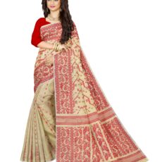 Moumita’s Saree Women’s Traditional Bengal Cotton Silk Soft Jamdani Saree (White)