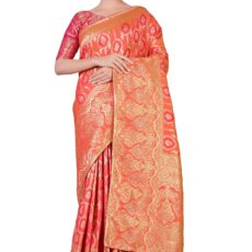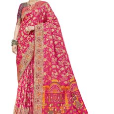 Monjolika Fashion Women’s Banarasi Silk Saree With Blouse Piece. (Rani Pink-3804)
