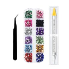 Sichumaria 12 Colors Rhinestones Gems AB Nail Art Rhinestones Decorations for DIY Nail Art Crafts Nail Gems Stones Crystals with Rhinestone, 1 pcs Rhinestone Picker Dotting Pen and 1Tweezer(1 Set )
