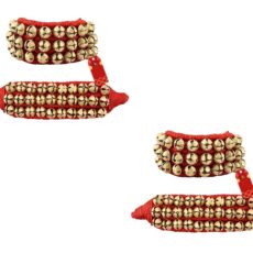 UAPAN Brass Ghungroo Anklets Bells For Women I 3 Line Pad I Red I 2 Pair I Perfect for traditional Indian dance