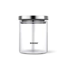 Borosil Classic Glass Jar, Air-Tight Storage Container For Kitchen, Glass Jar For Storing Spices, 600 ml, Clear
