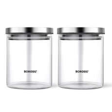 Borosil Classic Glass Jar, Air-Tight Storage Container For Kitchen, Glass Jar For Storing Spices, Snacks, Grains, Dals, Set of 2 (600 ml each), Clear