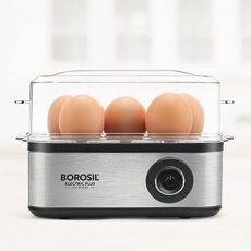 Borosil Electric Egg Boiler, 8 Egg Capacity, For Hard, Soft, Medium Boiled Eggs, Steamed Vegetables, Transparent Lid, Stainless Steel Exterior (500 Watts)