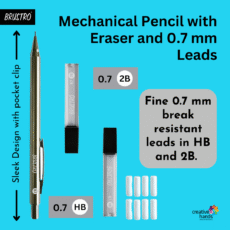 BRUSTRO Mechanical Pencil Set | HB-20 leads, 2B-20 leads, Spare eraser- 8 units|Tip size- 0.5 mm |Ideal for Students,Adults, Home,School,Office,Stationery Use |Writing, Sketching, Drawing, Mandala Art