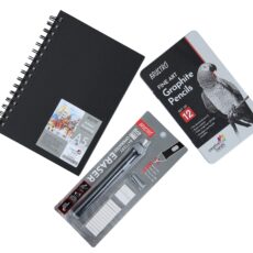 Brustro Slim Battery Operated Eraser + Graphite Pencil Set of 12 + A5 wiro Sketchbook