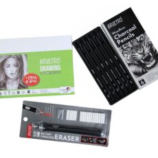 Brustro Slim Battery Operated Eraser + Woodless Charcoal Pencil + A5 Drawing Paper (32+8 Sheets)