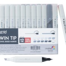 BRUSTRO Twin Tip Alcohol Based Marker Set of 12 – Cool Greys in Crossline PP See Through Box