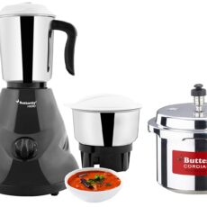 Butterfly Hero Mixer Grinder, 500W, 3 Jars (Grey) & Cordial Induction Base Aluminium Pressure Cooker with Outer Lid, 3 Litres, Silver