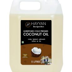 HAYYAN Cold Pressed Coconut Oil – Own Farm Unrefined for Cooking, Skin, Hair & Baby massage (Chekku/Ghani) – 5 Litres