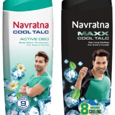 Navratna Maxx Cool Talc |Ice Cooling Effect |For Last Lasting Freshness and Fragrance|Instant Sweat Control, 400gm&Navratna Active Deo for Unisex, 400g
