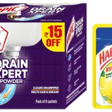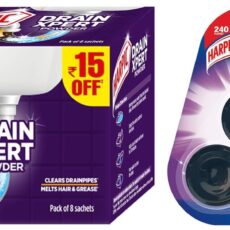 Harpic Hygienic Toilet Cleaner Rim Block, Citrus – 26 g (Pack of 3) | & Harpic (50g x 8), DrainXpert Drain Cleaner Powder | Effective Sink Cleaner, Drain Blockage Remover, Drain Pipe Cleaner