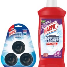 Harpic Flushmatic In-Cistern Toilet Cleaner Blocks, Marine – 150 g | Lasts Upto 240 Flushes & Disinfectant Bathroom Cleaner Liquid, Floral – 1 L | India’s # 1 Bathroom Cleaner
