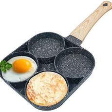Dream Corporate World 4 Cups Egg Pan Omelette Pan Frying Pan Egg Frying Pan 4 Cup Crepe Pan Granite Egg Cooker Breakfast Pancakes Pan Suitable for Gas Stove & Induction Cookware (Wood Grain Handle)