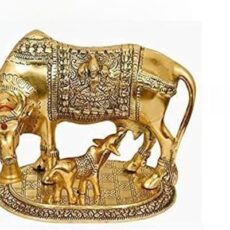 ND Fashion Brass Golden Kamdhenu Cow with Calf | | Vastu Gau MATA Idol | | Spiritual Vastu Nandi Pooja Figurine Sculpture | Kamdhenu Cow & Calf Idol for Home and Office (Cow with Calf)