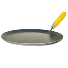 Madurai ARTISANS Club – Pure Iron DOSA/ROTI – KALLU/TAWA -with Wooden Handle (Black Color) (Flat TAWA – Wooden Handle)