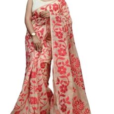 Women’s Floral Print Lata Design Jamdani Cotton Silk Saree Without Blouse Piece (Cream)
