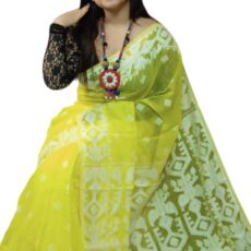 Women Cotton Silk Reshom Dhakai Jamdani Saree (Yellow)