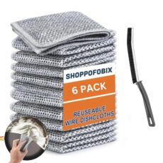 SHOPPOFOBIX Multipurpose Non-Scratch Wire Dishcloth, 6-Pack Soft Wire Dishwashing Rags Safe for Non-Stick Cookware, Scrubs & Cleans for Dishes, Sinks, Counters, Stove Tops, Easy Rinsing, Durable (6)