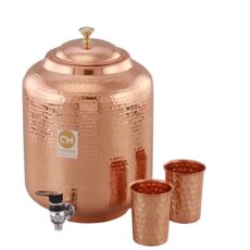 Copper-Master 5 Litre Pure Copper Hammered Water Dispenser (Matka) Container Pot with 2 Pure Copper Glasses Pure Copper and Ayurvedic Health Benefits (5000 ml + 600 ml)