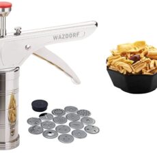 Wazdorf Stainless Steel Kitchen Press with 15 Different Types of Jalies, Murukku Maker/Bhujiya Maker/Noodles/Cookies/Namkeen/Chakali Maker/Sev Maker/Farsan Maker/Gathiya Maker