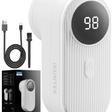 GAIATOP Fabric Shaver, Rechargeable Lint Remover Sweater Defuzzer, Intelligent Digital Display Lints Shaver Fuzzs Pills Bobbles Trimmer for Clothes and Furniture White (White)