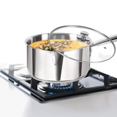 Milton Pro Cook Stainless Steel Sandwich Bottom Induction Sauce/Tea Pan with Glass Lid, 14 cm / 1.2 litres, Steel Plain | Dishwasher Safe | Flame Safe | Gas Stove Safe | Hot Plate Safe | SS Handle