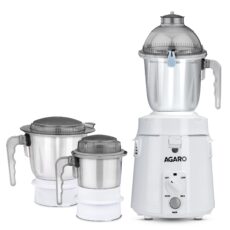 AGARO Royal Mixer Grinder 900W, Heavy Duty, 100% Pure Copper Motor, 3 Stainless Steel Jar, 3 Speed, Whip Function, Stainless Steel Blades,Wet & Dry Grinding, White