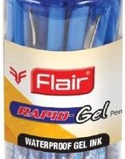 FLAIR Super Smooth Rapid Gel Pen | Tip Size 0.5 mm | Elegant Metal Clip with Soft Rubber Grip | Waterproof Ink for Smudge Free Writing | Ideal for School, Collage & Office | Blue Ink, Jar Pack of 25