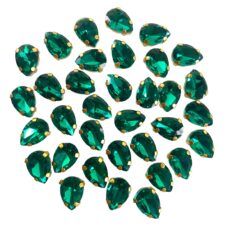 EmbroideryMaterial Emerald Green Shiny Sew on Rhinestones/Gem Stones Sewing Crystals Stone Beads for Jewellery Making, Embroidery, Craft, Sewing Purpose (Size: 7X10MM, Pack of 50 Pieces, Teardrop Shape)