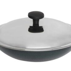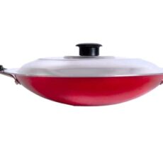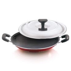 Home-pro Non-Stick Aluminium Appachetty with Steel Lid, Deep Round Bottom Appachatti, Appachatty with Steel Lid, Residue Free, Red