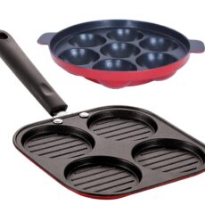 NIRLON Aluminium Non-Stick Kitchen Cooking Utensil Item Set of 2 Pieces Including Casting Uttapam-4 Cavity & Appam-7 Cavity