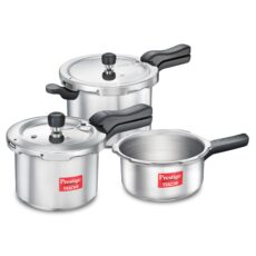 Prestige 2L+3L+5 L Popular Max outer lid Aluminium combo Pressure Cooker with polished finish|Deep lid controls spillage|Induction based|Straight wall|Pressure Indicator | Gasket-release system|Silver