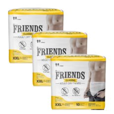 Friends Classic Adult Diapers Pants Style – 30 Count (Double Extra Large) with odour lock, Unisex, Leakproof, Elastic Waist and Anti-Bacterial Absorbent Core – Waist Size 34-65 Inch; 86-165 cm