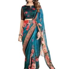 Shopgarb Women’s Elegant Digital Floral Printed Sari with Blouse (SH-22 -Green-Designer-Floral-Party-Wedding-Saree, Free Size)