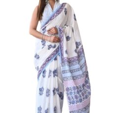 Shivanya Handicrafts Women’s Hand Block Print Mulmul Cotton Sarees with Attach Blouse Piece (SH-1444, White)