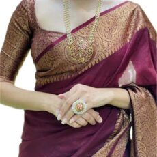 Women’s Marun Silk Saree Indian And Pakistani Festival Sari With Blouse Material (NES8067 Marun 5)