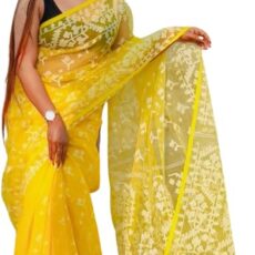Women’s Traditional Bengal Cotton Silk Jamdani Saree Without Blouse Piece (Yellow)