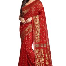 WoodenTant women’s cotton silk golden zari dhakai jamdani saree without blouse piece_(Red)