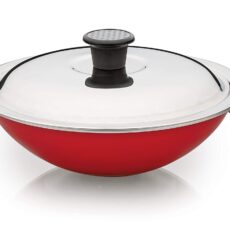 SOWBAGHYA Non Stick Aluminium Deep Appakadai – Red – Appam Maker Non Stick with Lid – Appam Chatty Non Stick – Appachatti – Appam Kadai – Ideal for Indian Cooking (Aluminium, 2.6 mm Thickness)